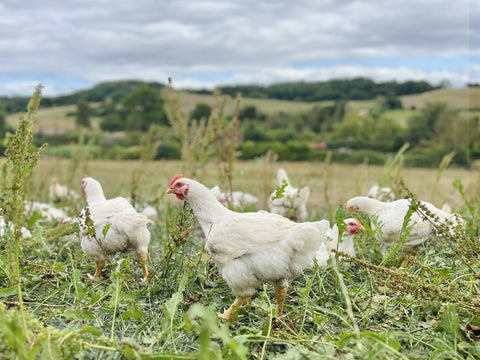 Poultry cannot live on grass alone, so we supplement their diet with organic grains. Alongside this, they forage for bugs and grubs, giving them a healthy, balanced diet that supports natural behaviour and wellbeing.